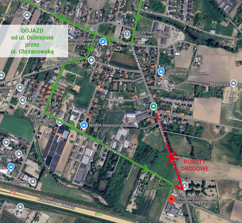 Dojazd do firmy odbywa się od strony ul. Dobrepole, jadąc ul. Spławie należy skręcić w ul. Chrzanowską i kierować się znakami objazdu.